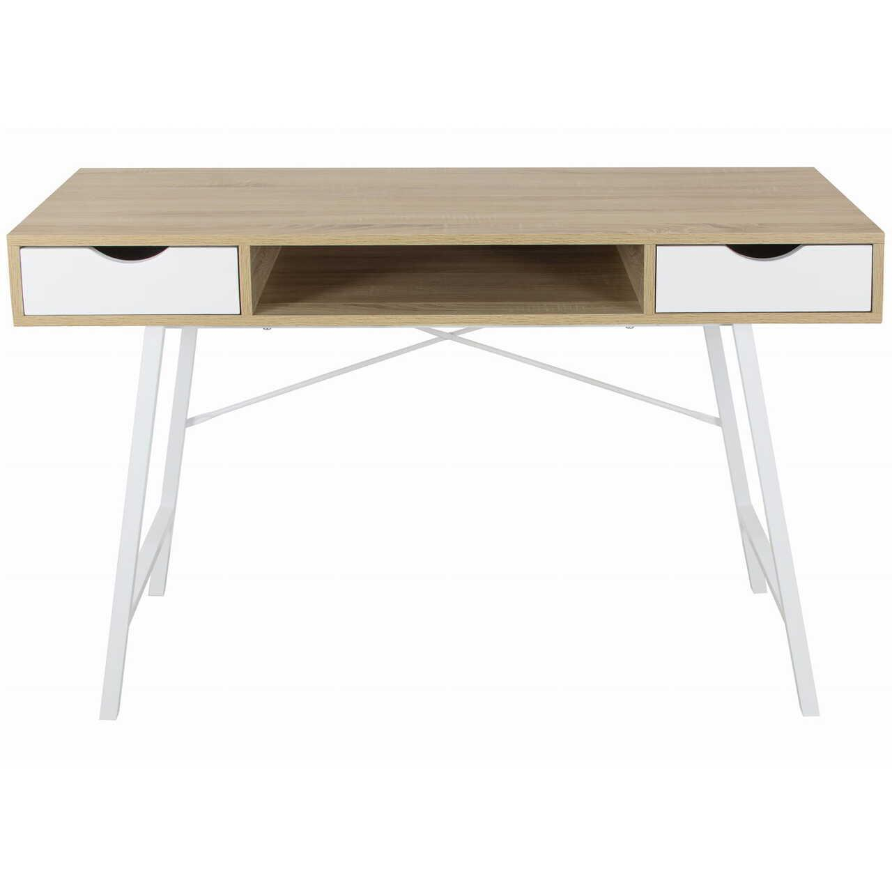Birou calculator, Jumi, placa MDF, otel, 2 sertare, alb si natur, 120x48x76 cm
