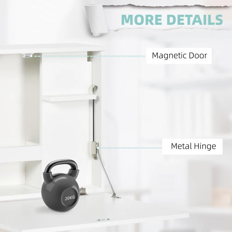 Birou de perete, suspendat, pliabil, MDF, cu raft, alb, max 40 kg, 60x21.5x50 cm