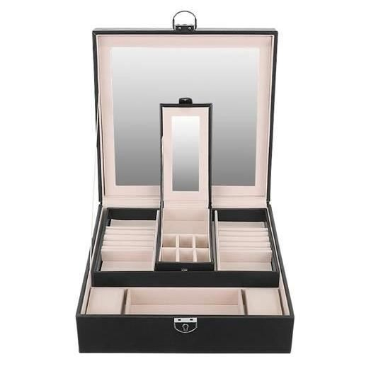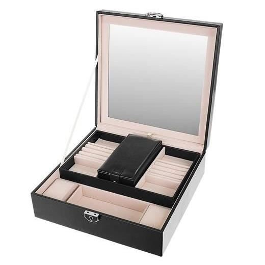 Cutie pentru bijuterii, cu oglinda, negru, 25.5x25.5x9 cm