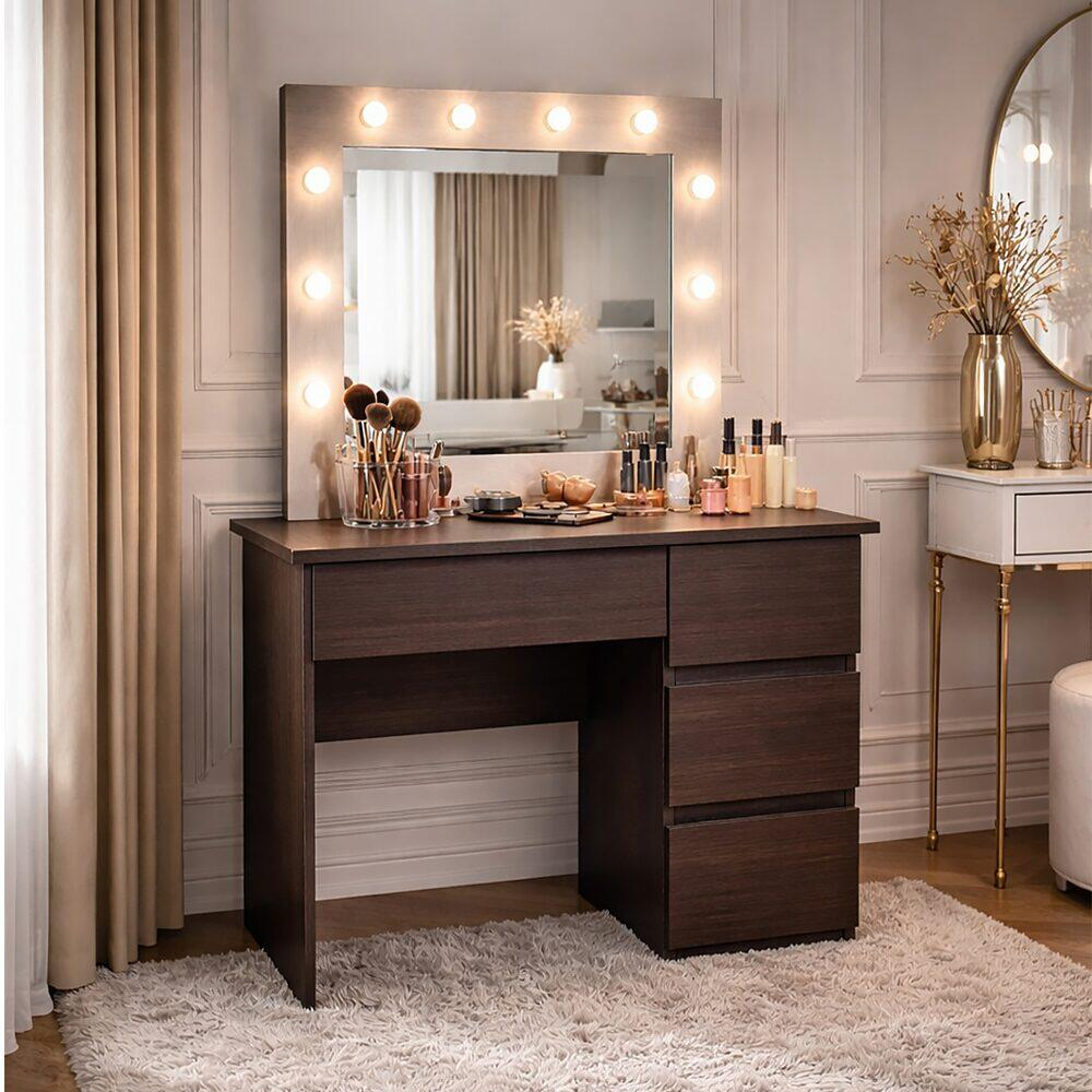 Organizare Inteligenta: Sertarele spatioase sunt concepute pentru depozitarea ordonata a produselor de beauty, bijuteriilor si accesoriilor, pastrand blatul de lucru mereu impecabil.