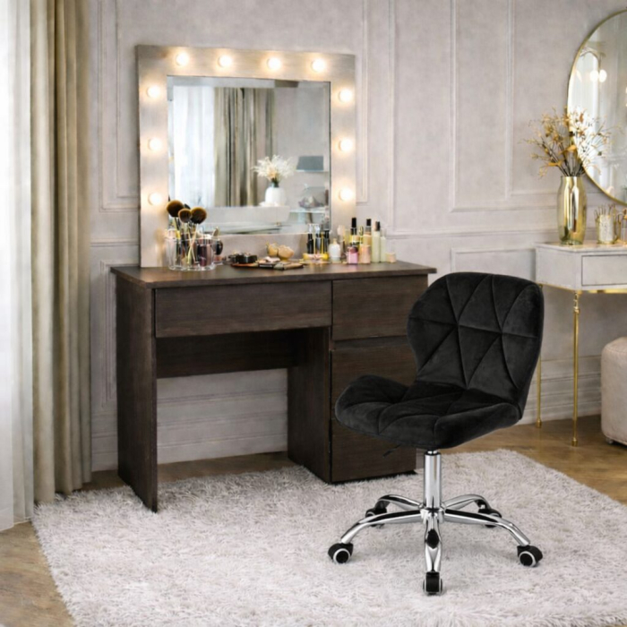 Pachetul include, de asemenea, un scaun rotativ foarte confortabil, in stil modern, care se va asorta perfect cu masa de machiaj!