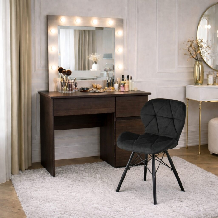 Masa de toaleta/machiaj, Irina, wenge + scaun Lago negru, cu oglinda si LED-uri, 94x43x141 cm