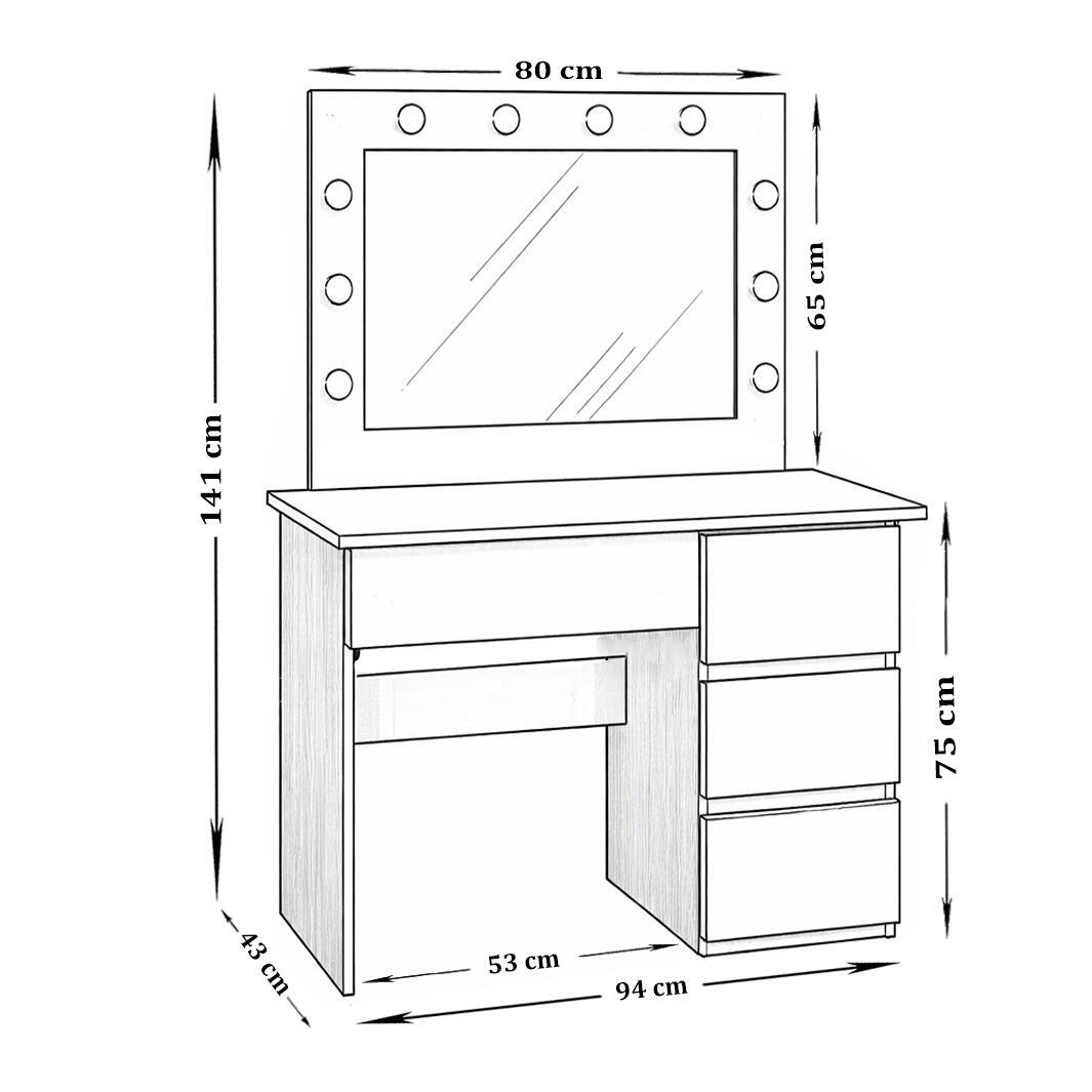 Organizare Inteligenta: Sertarele spatioase sunt concepute pentru depozitarea ordonata a produselor de beauty, bijuteriilor si accesoriilor, pastrand blatul de lucru mereu impecabil.