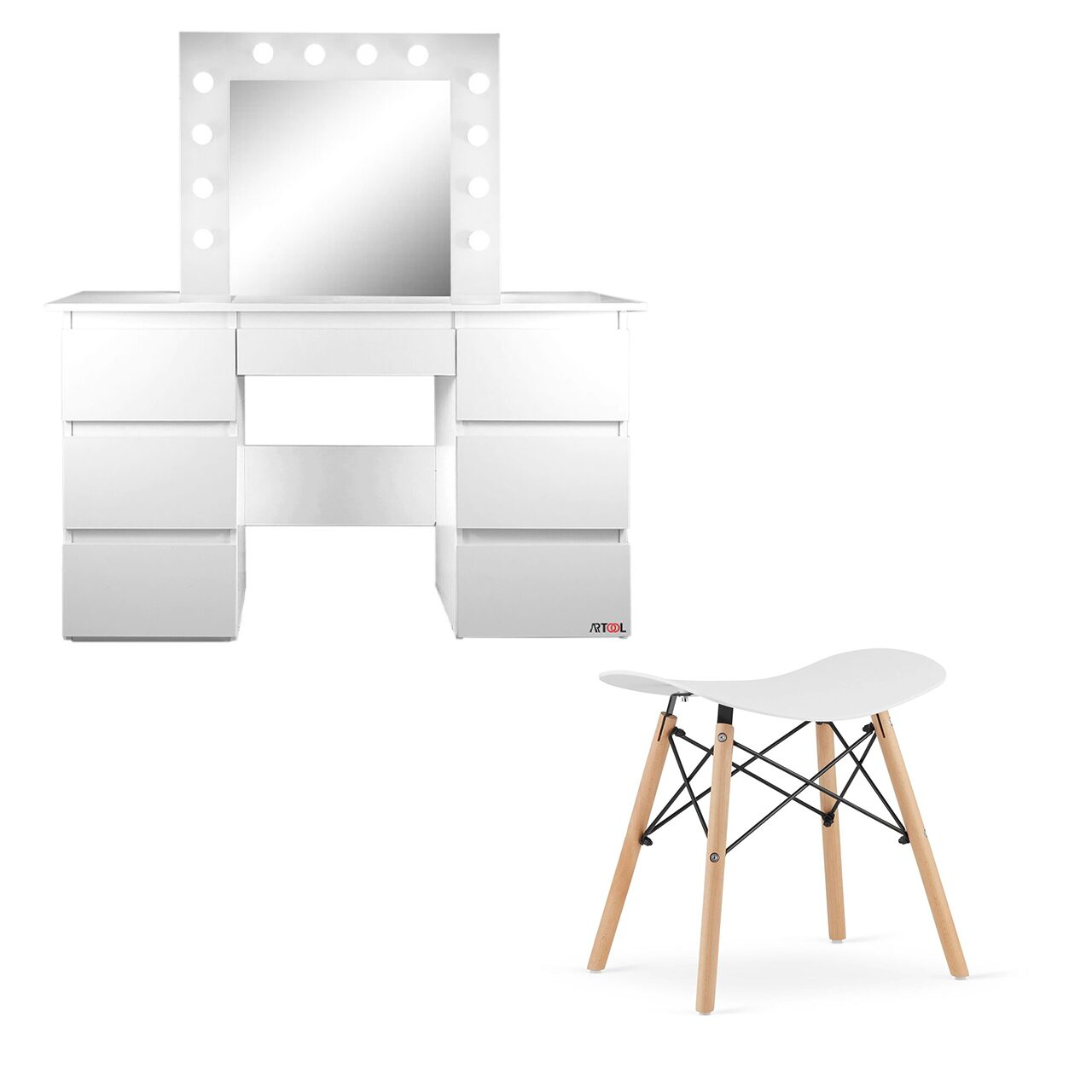 Aceasta masa este prevazuta cu o oglinda mare si 12 becuri LED incorporate, ceea ce o face ideala pentru aplicarea machiajului sau coafurii.