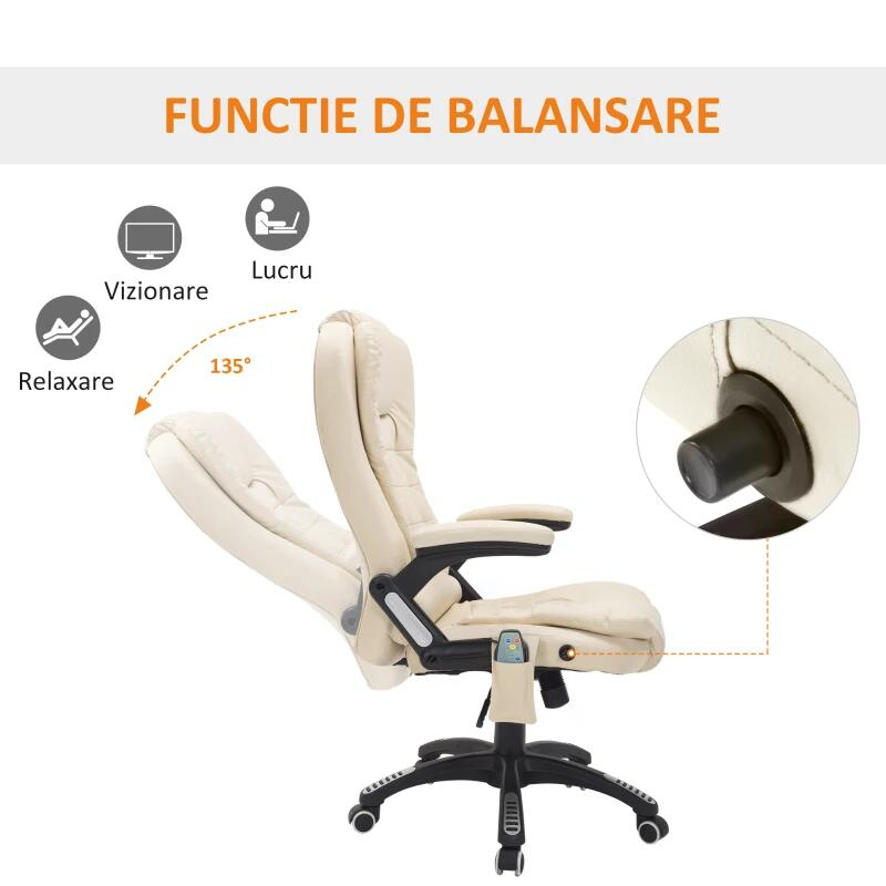 Scaun de birou cu masaj si incalzire, rotativ, piele ecologica, bej, max 150 kg, 62x68x111-121 cm