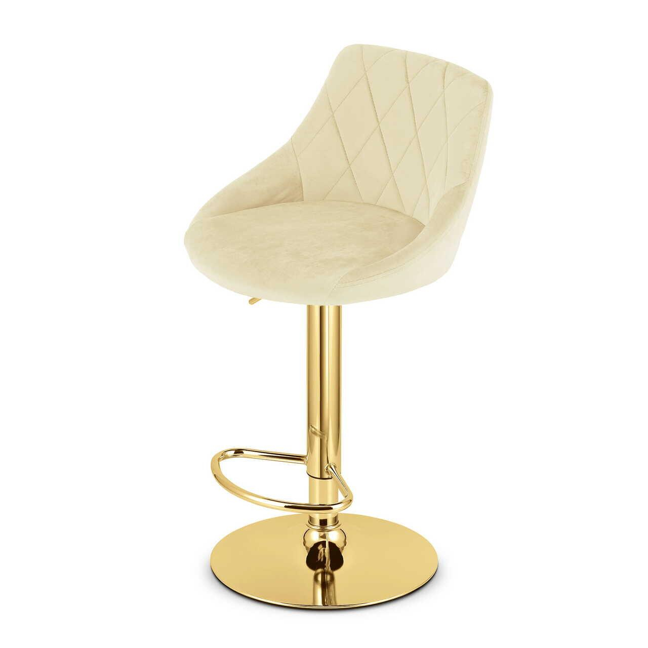 Scaun de bucatarie/bar, Artool, Kast, rotativ, catifea, bej si auriu, 45.5x49x85-105 cm