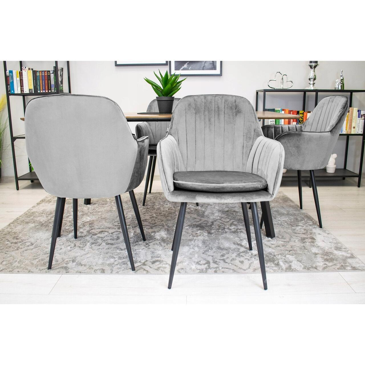 Scaune stil scandinav, set 2 buc, Artool, Lugo, catifea, metal, argintiu si negru, 57.5x56.5x86.5 cm