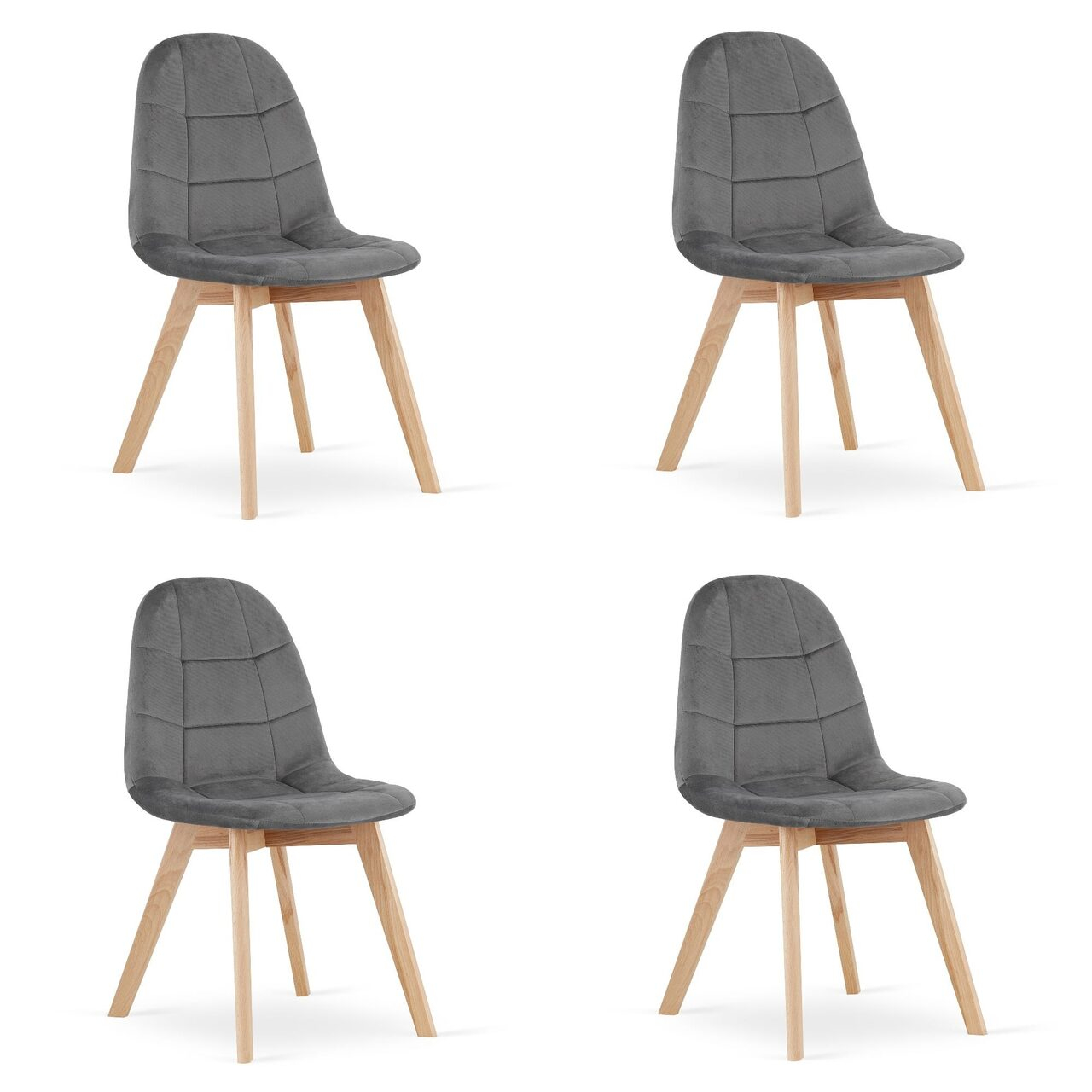 Set 4 scaune bucatarie/living, Artool, Bora, catifea, lemn, gri inchis, 44.5x54x81.5 cm
