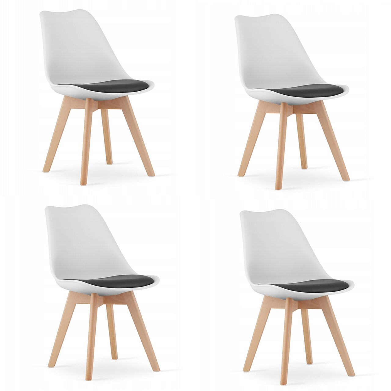 Set 4 scaune stil scandinav, Artool, Mark, PP, lemn, alb, perna neagra, 49x43x82 cm