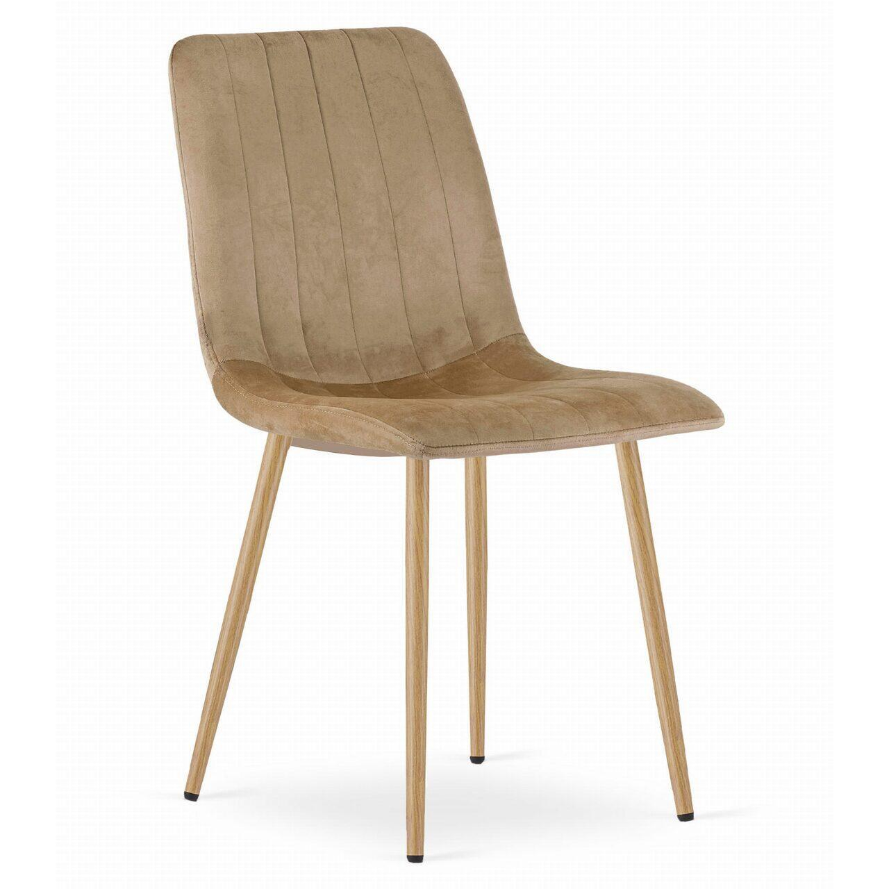 Set 4 scaune bucatarie/living, Lava, catifea, metal, maro si natur, 45x55x86 cm