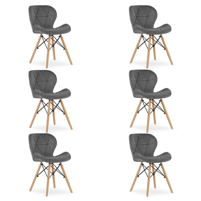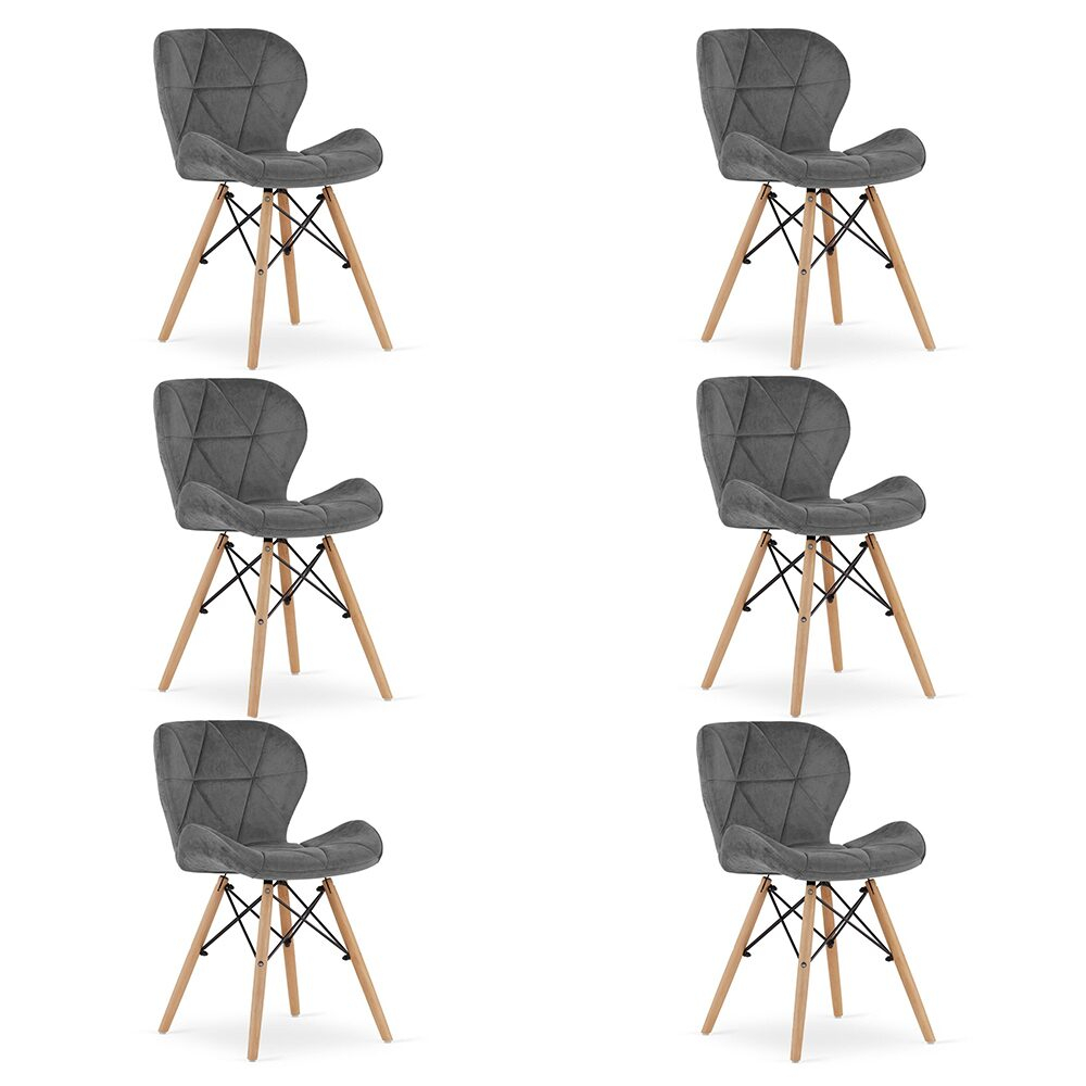 Set 6 scaune bucatarie/living, Artool, Lago Velvet, catifea, lemn, gri, 48x52.5x74 cm