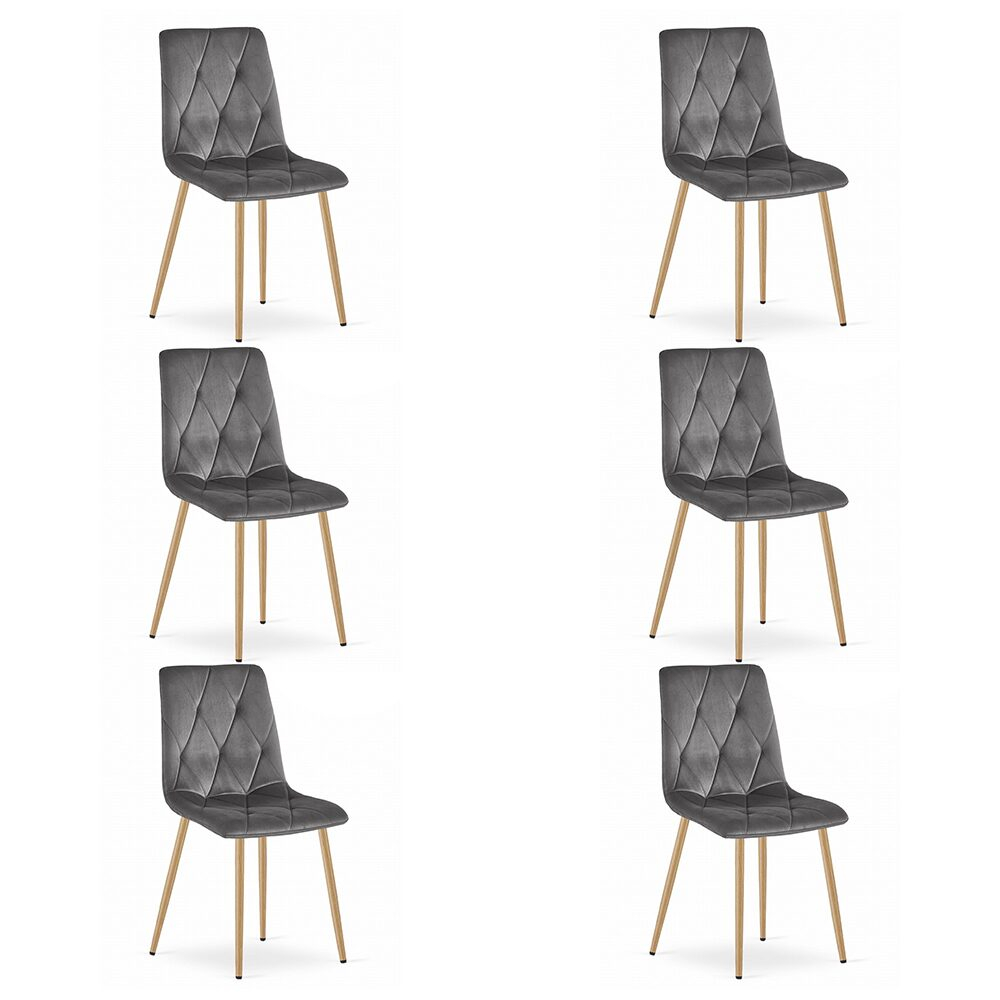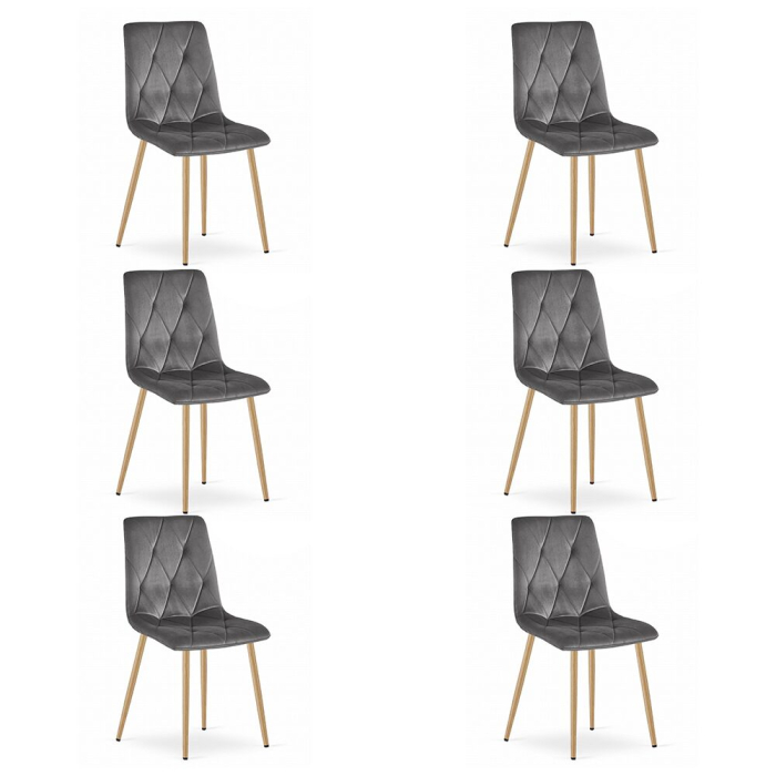 Set 6 scaune bucatarie/living, Artool, Libra, catifea, metal, gri, picioare natur, 45x54x86.5 cm