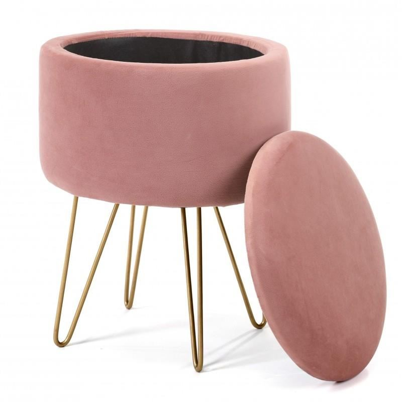 Taburet, rotund, cu spatiu depozitare, catifea, roz, max 90 kg, 35x35x45 cm, Lili
